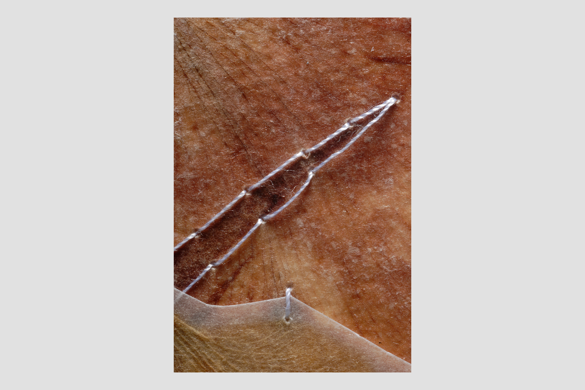 reflexión con ejercicios manuales de bordado y costura. Su obra recuerda a los