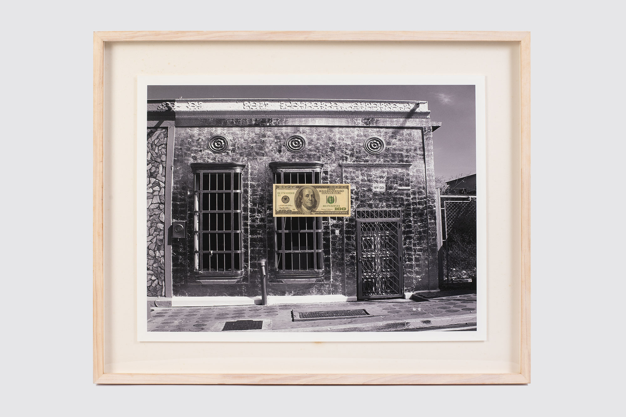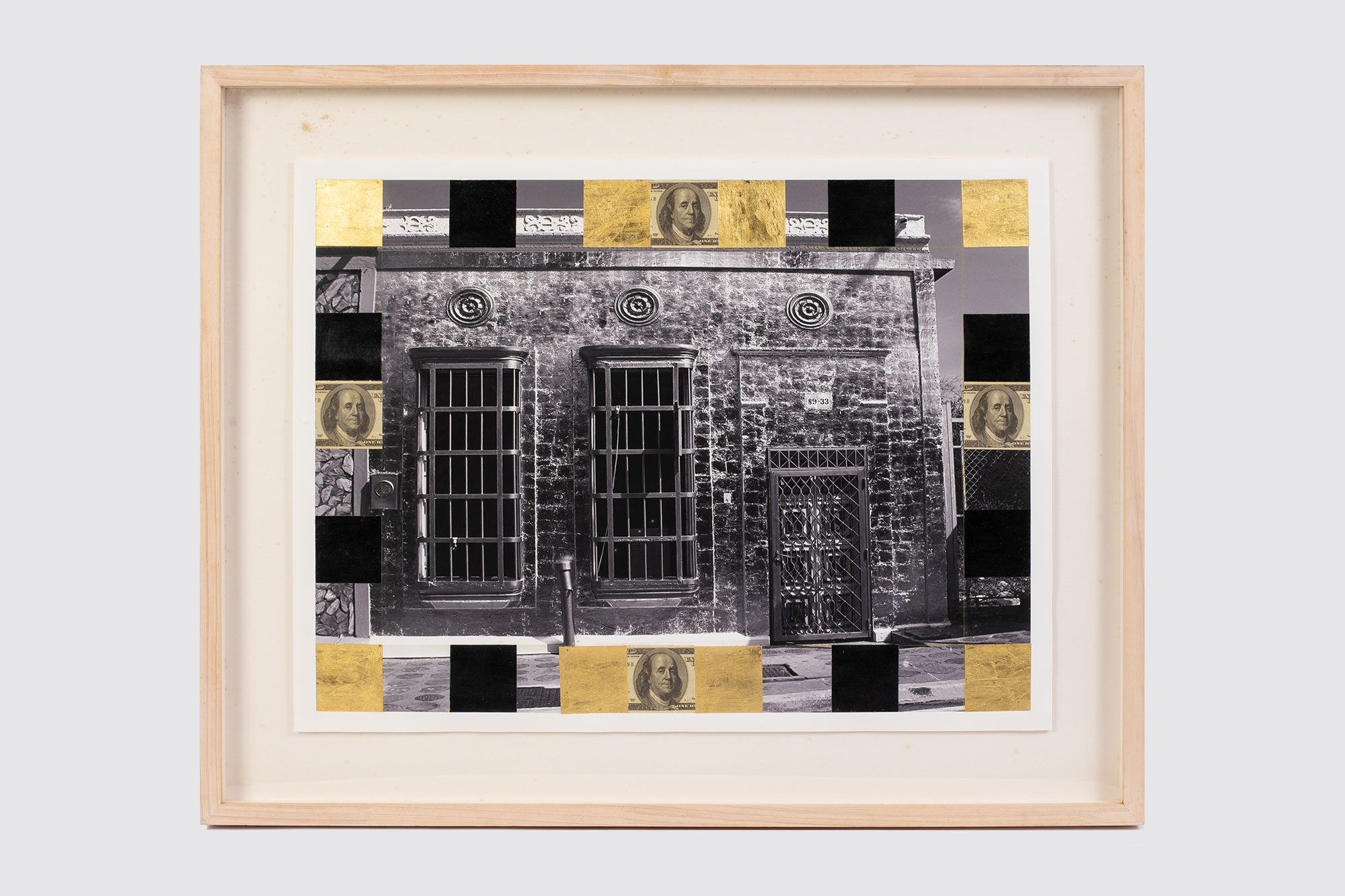 sin título de la serie: "las casas de oro", 2008 fotografía intervenida con collage y billetes de 100 $ 71 × 88 × 1 cm